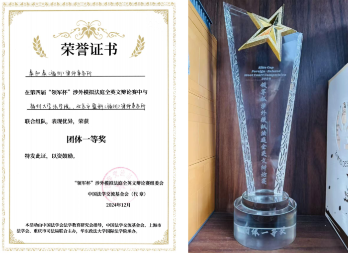 泰和泰福州律師事務所鄭暉律師在第四屆“領軍杯”涉外模擬法庭全英文辯論賽中榮獲佳績 福州律師資訊發布者 福州律師網2025年1月3日2024年12月,第四屆“領軍杯”涉外模擬法庭全英文辯論賽(Elite Cup Foreign-related Moot詳情