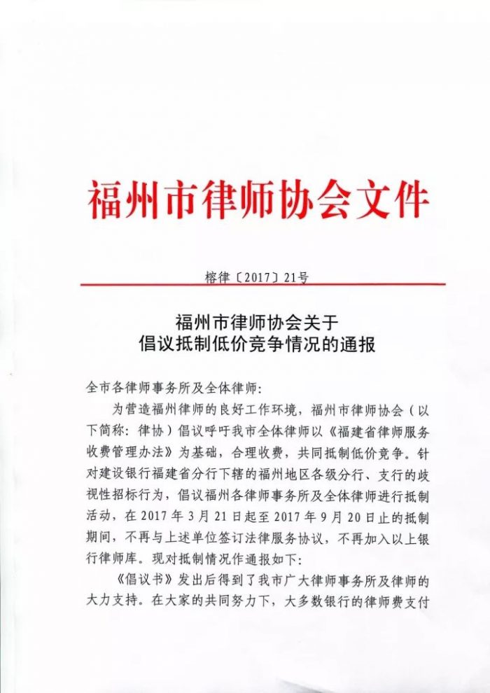 福州市律師協會關于倡議福州律師事務所及福州律師抵制低價競爭情況的通報 福州律師資訊發布者 福州律師網2017年10月13日福州市律師協會關于倡議福州律師事務所及福州律師抵制低價競爭情況的通報 . 福州律師網專業福州律師分享