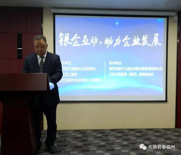 福州律所動(dòng)態(tài):福州天池君泰律所“銀企互動(dòng),助力民營(yíng)企業(yè)發(fā)展”論壇成功舉辦 福州律師資訊發(fā)布者 福州律師網(wǎng)2019年1月10日為了貫徹落實(shí)習(xí)近平總書(shū)記在民營(yíng)企業(yè)座談會(huì)上的講話(huà)精神,為民營(yíng)企業(yè)發(fā)展?fàn)I造良好的投資和營(yíng)商環(huán)境,海西現(xiàn)代金融中心區(qū)管委會(huì)、詳情