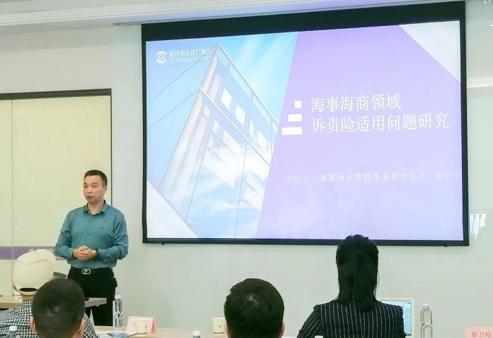 福建閩眾律師事務(wù)所受邀開展“海商海事相關(guān)保險知識”專題培訓(xùn) 福州律師資訊發(fā)布者 福州律師網(wǎng)2024年4月10日2024年4月1日,福建閩眾律師事務(wù)所合伙人鄭學(xué)平、林燕鋒兩位律師受邀在福建閩眾律師事務(wù)所為多家保險公司主要負(fù)責(zé)人、船東詳情