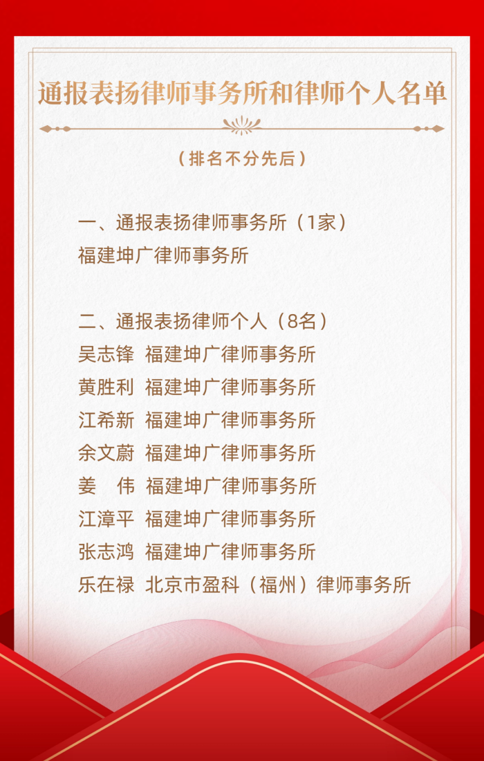 省律協(xié)通報表揚!為福州這群勇救落水者的律師點贊 福州律師資訊發(fā)布者 福州律師網2025年10月13日10月10日,福建省律師協(xié)會第十一屆常務理事會表決通過《福建省律師協(xié)會關于通報表揚福建坤廣律師事務所和吳志鋒等八名律師的詳情