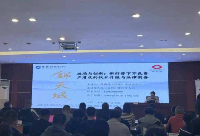 錦天城福州律師事務(wù)所律師連續(xù)受邀為建行、郵儲(chǔ)銀行福建省分行開(kāi)展金融法律專題培訓(xùn) 福州律師資訊發(fā)布者 福州律師網(wǎng)2025年11月18日近期,本所律師憑借在金融法律領(lǐng)域的深厚積淀與實(shí)務(wù)專長(zhǎng),連續(xù)受邀為中國(guó)建設(shè)銀行福建省分行、中國(guó)郵政儲(chǔ)蓄銀行福建省分行開(kāi)展專詳情