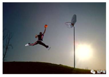 圖一剪影僅就形象而言,它最多體現的是一個體格健碩的男子伸手扣籃的情形,如果沒有宣傳、使用場景、圖片創作說明、時代背景,誰也不會冒然說他就是邁克爾?杰弗里?喬丹先生。