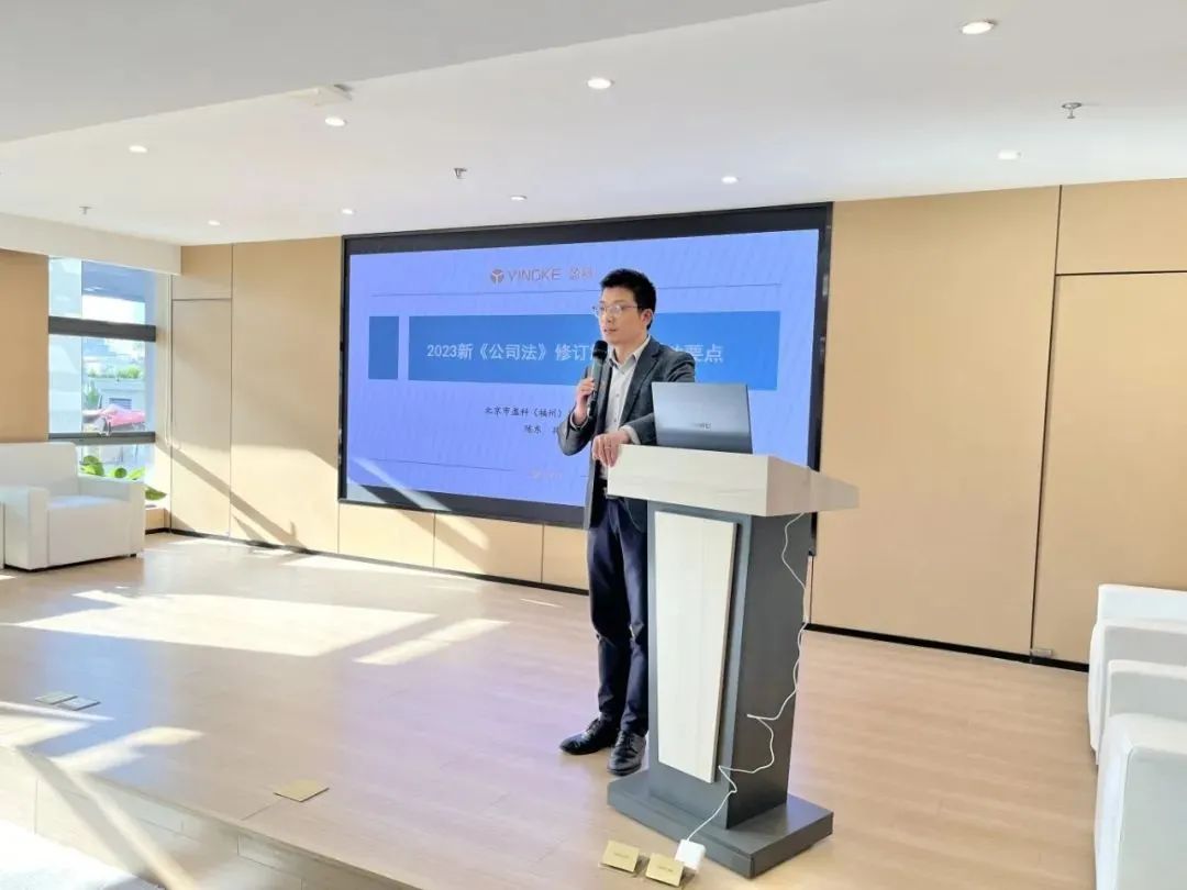 2024年12月17日,北京市盈科(福州)律師事務所(以下簡稱:“盈科福州”)陳東律師受鼓樓區國投集團邀請在新能源科創中心開展以“新《公司法》解讀與企業法律風險防控”為主題的專題培訓,此次培訓吸引了鼓樓區國投集團以及新能源科創中心的四家入駐企業,共計30余人參加培訓。