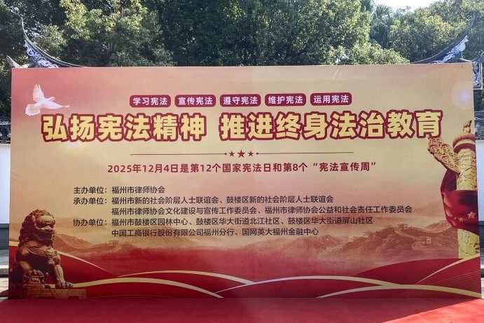 福州律協“12·4”國家憲法日主題宣傳活動圓滿舉行 福州律師資訊發布者 福州律師網2025年12月5日初冬榕城,暖陽和煦。2025年12月4日,由福州市律師協會主辦的主題為“弘揚憲法精神 推進終身法治教育”的“12·4”國詳情