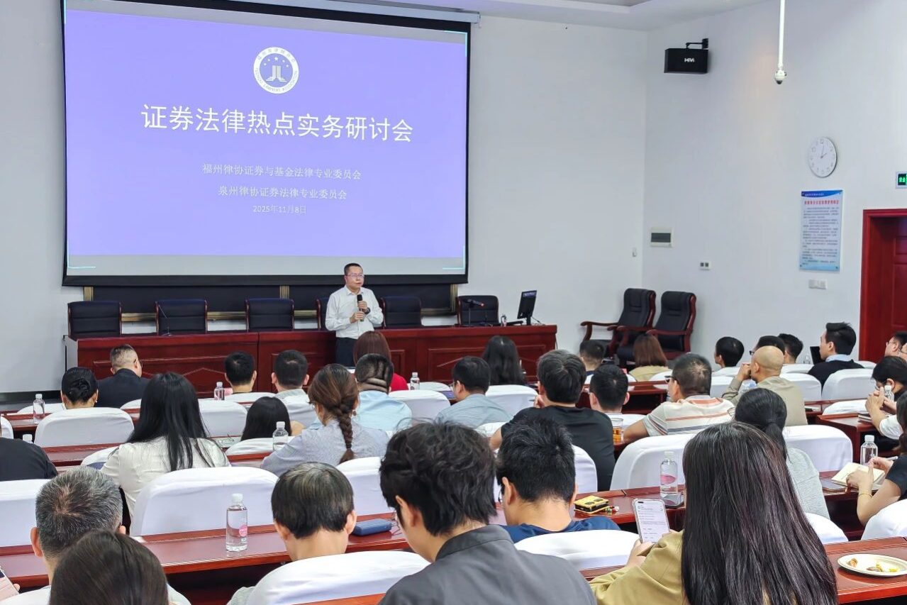 福州律協舉辦“證券法律熱點”實務研討會 福州律師資訊發布者 福州律師網2025年11月17日2025年11月8日,福州律協證券與基金法律專業委員會舉辦“證券法律熱點”實務研討會,吸引近百名律師參與交流討論。 研討詳情