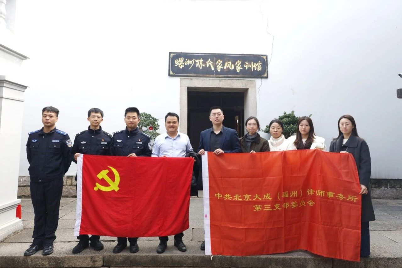 大成福州律師事務(wù)所第三黨支部與福州市公安局螺洲派出所支部委員會(huì)開展黨建共建活動(dòng) 福州律師資訊發(fā)布者 福州律師網(wǎng)2024年12月23日為激勵(lì)黨員同志發(fā)揚(yáng)和繼承黨的優(yōu)良傳統(tǒng),引導(dǎo)黨員干部遵法守紀(jì),加強(qiáng)黨員同志的意識(shí)教育,2024年12月20日下午,大成福州詳情