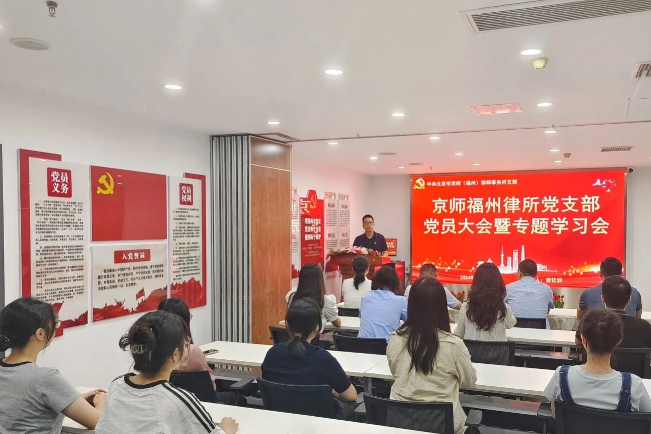 京師福州律師事務所傳達學習福州市律師行業黨組織書記培訓班精神 福州律師資訊發布者 福州律師網2024年10月16日2024年10月16日上午,為充分貫徹福州市律師行業黨組織書記培訓班有關精神,京師福州分所召開黨員大會及專題會議傳達部署詳情