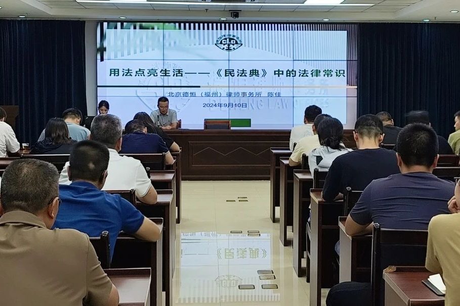 德恒福州陳佳律師應邀為福州市林業局作法律專題講座 福州律師資訊發布者 福州律師網2024年9月19日近日,德恒福州陳佳律師應邀為福州市林業局作《用法點亮生活——民法典中的法律常識》《學憲法 講憲法》專題講座。福州市林業局詳情