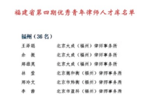 團隊陳小丹律師入選福建省第四期優秀青年律師人才庫 律師展示, 福州律師資訊發布者 福州律師網2020年7月30日為加強青年律師隊伍建設,進一步做好全省優秀青年律師人才庫管理工作,2020年7月29日經省律協常務理事會表決通過,福建省詳情